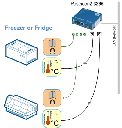Poseidon2 3266 دستگاهی جهت نظارت و خواندن از راه دور سنسورهای متصل به آن، تحت شبکه می باشد. اندازه گیری دما، ولتاژ، وضعیت ورودیهای دیجیتال و دیگر سنسورهای خارجی.